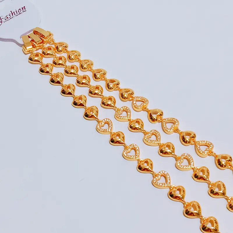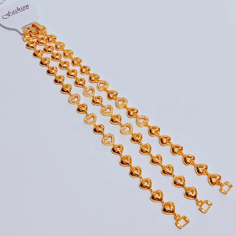 Harga grosir untuk 1 pcs gelang. Panjang 18 cm dengan desain juntai yang elegan dipadukan dengan permata gold. Terbuat dari cooper alloy lapis emas dengan kualitas premium. Material anti karat dan non alergi, aman untuk kulit sensitif.