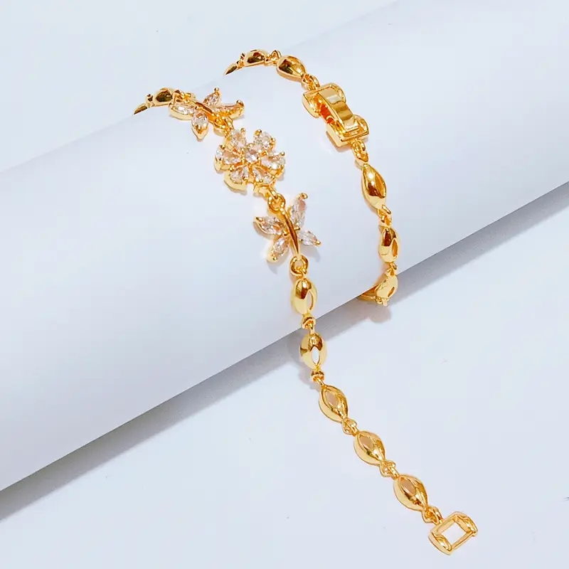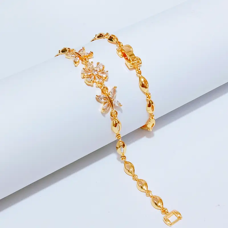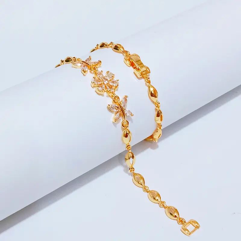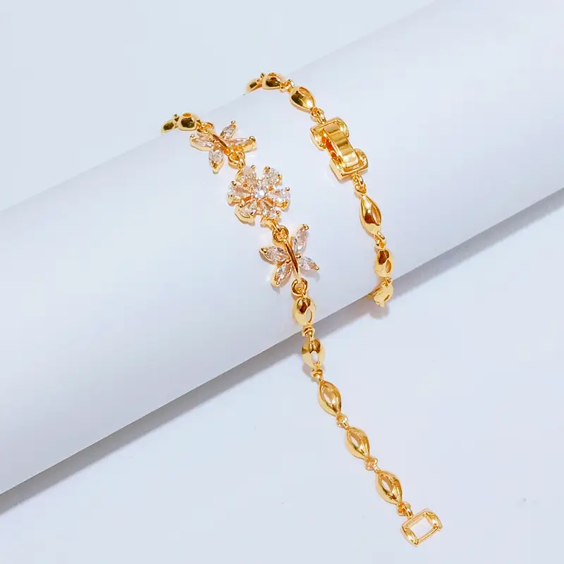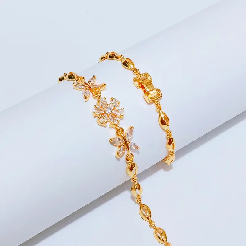 Harga grosir untuk 1 pcs gelang. Panjang 18 cm dengan kombinasi permata yang elegan namun tetap kasual. Material premium anti karat dengan permata kristal zirconia. Terbuat dari cooper alloy lapis emas dengan kualitas terjamin. Material anti karat dan non alergi, aman untuk kulit sensitif.