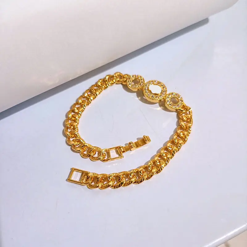 Gelang Tangan Rantai – Gelang Plat Permata Motif Bulat
