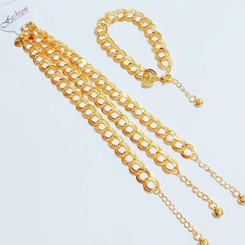 Harga grosir untuk 1 pcs gelang. Panjang 18 cm dengan desain simpel yang elegan. Gelang rantai gold dengan perlindungan anti karat. Terbuat dari cooper alloy lapis emas dengan material non alergi, aman untuk kulit sensitif.