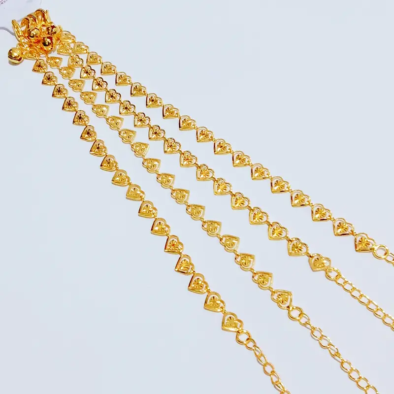 Harga grosir untuk 1 pcs gelang. Panjang 18 cm dengan tekstur glossy mengkilap dan desain simpel yang elegan. Terbuat dari cooper alloy lapis emas dengan kualitas Premium Mirror Quality Jewelry. Material anti karat dan non alergi, aman untuk kulit sensitif.