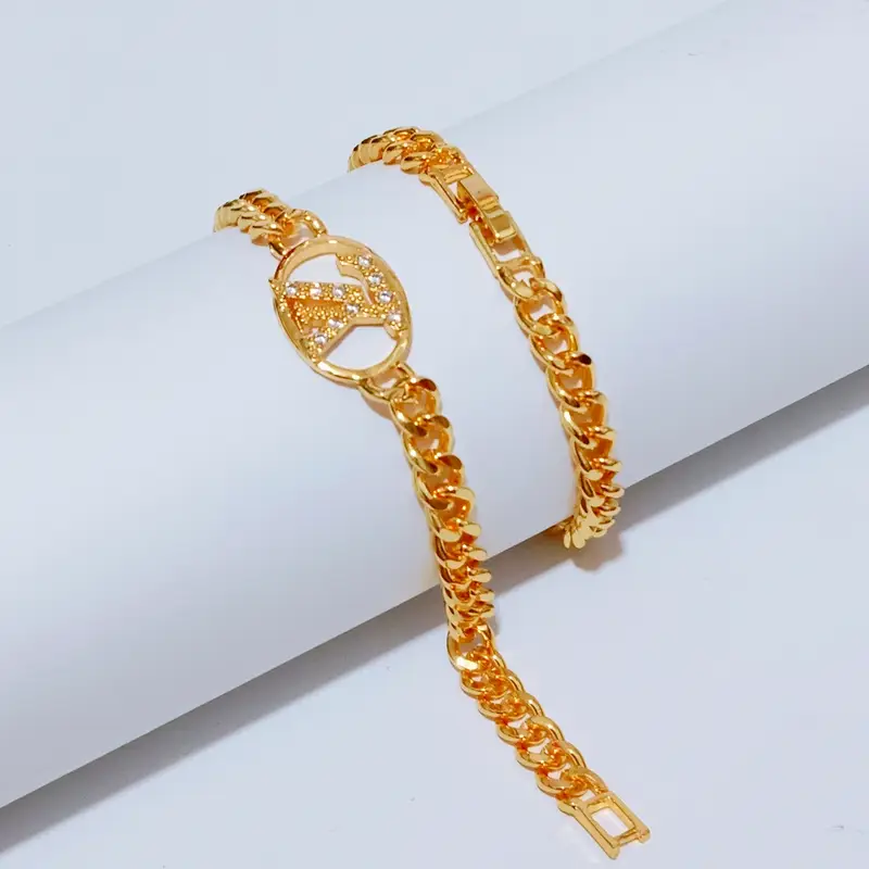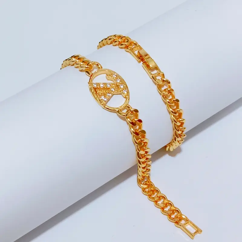 Harga grosir untuk 1 pcs gelang. Panjang 18 cm dengan desain simpel yang elegan. Gelang rantai gold dengan lapisan emas berkualitas. Terbuat dari cooper alloy lapis emas dengan finishing Premium Mirror Quality Jewelry. Material anti karat dan non alergi, aman untuk kulit sensitif.