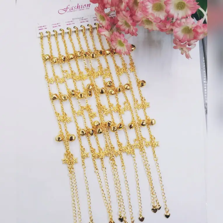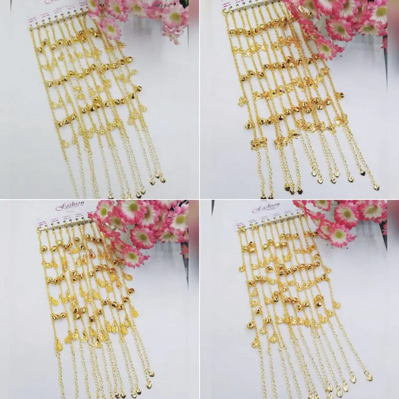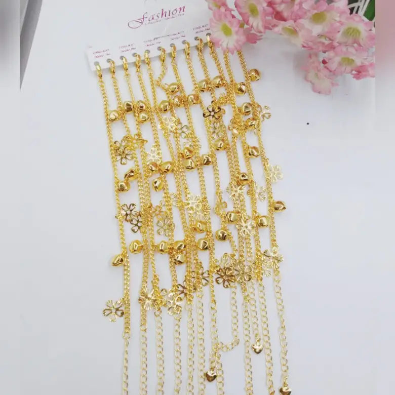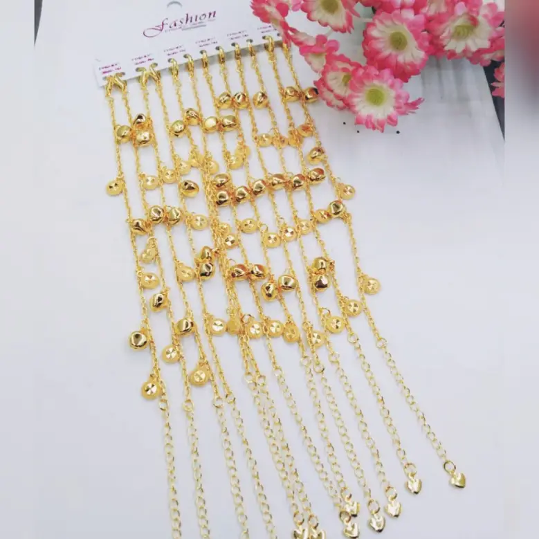 Harga grosir untuk 1 pcs gelang. Panjang 18 cm dengan desain simpel yang elegan, lapisan emas berkualitas dan perlindungan anti karat. Terbuat dari cooper alloy lapis emas dengan finishing Premium Mirror Quality Jewelry. Material anti karat dan non alergi, aman untuk kulit sensitif.