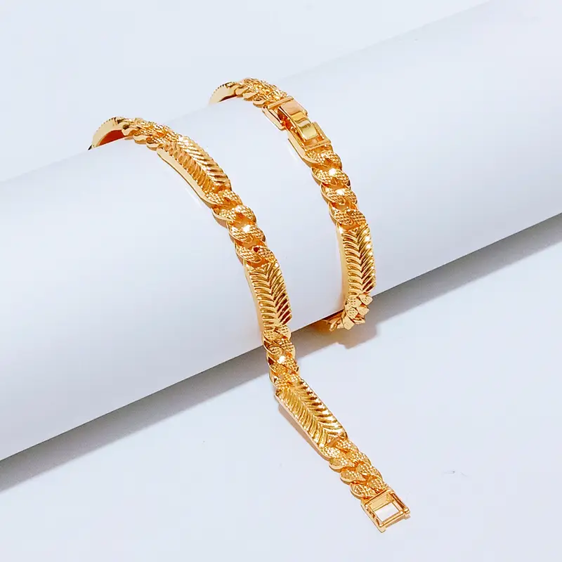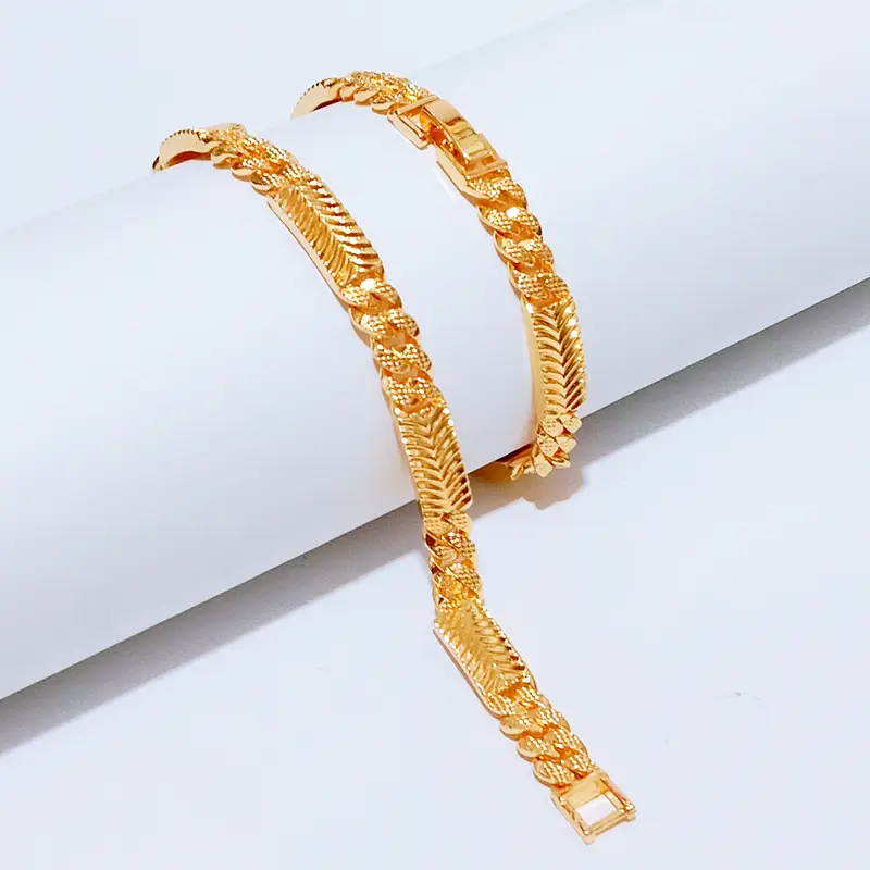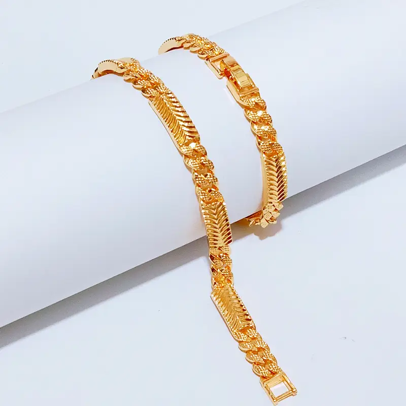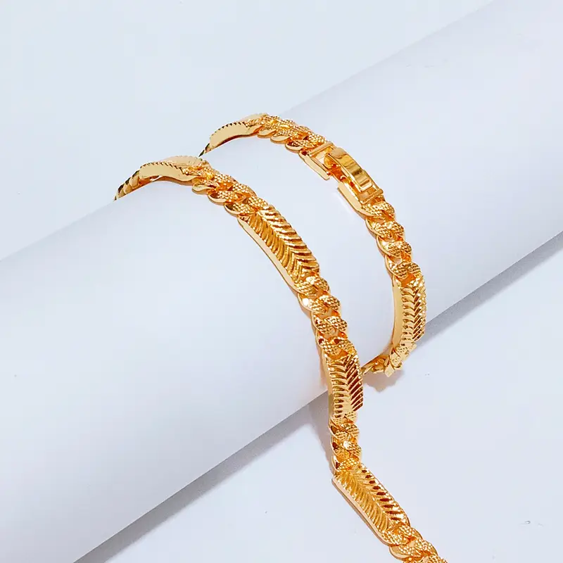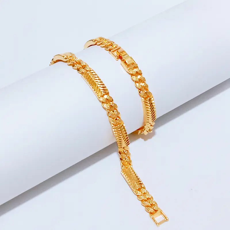Harga grosir untuk 1 pcs gelang. Panjang 18 cm dengan desain simpel yang mudah dipadukan dengan berbagai outfit. Gelang rantai dengan lapisan emas berkualitas. Terbuat dari cooper alloy lapis emas dengan material anti karat dan non alergi, aman untuk kulit sensitif.