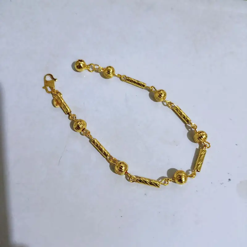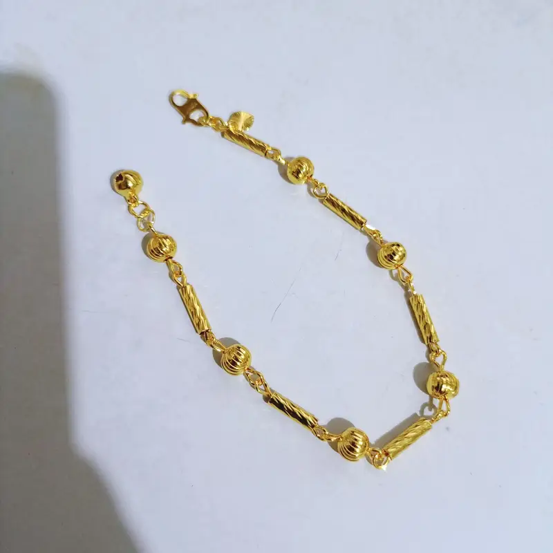 Harga grosir untuk 1 pcs gelang. Panjang 18 cm dengan desain bulat ukir yang simpel kasual. Terbuat dari cooper alloy lapis emas dengan kualitas premium. Material anti karat dan non alergi, aman untuk kulit sensitif.
