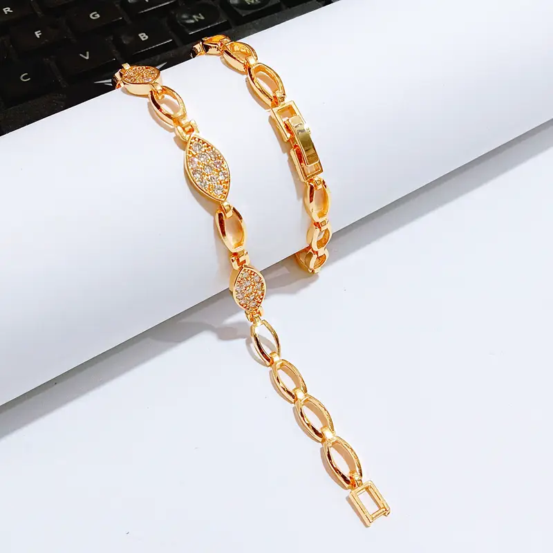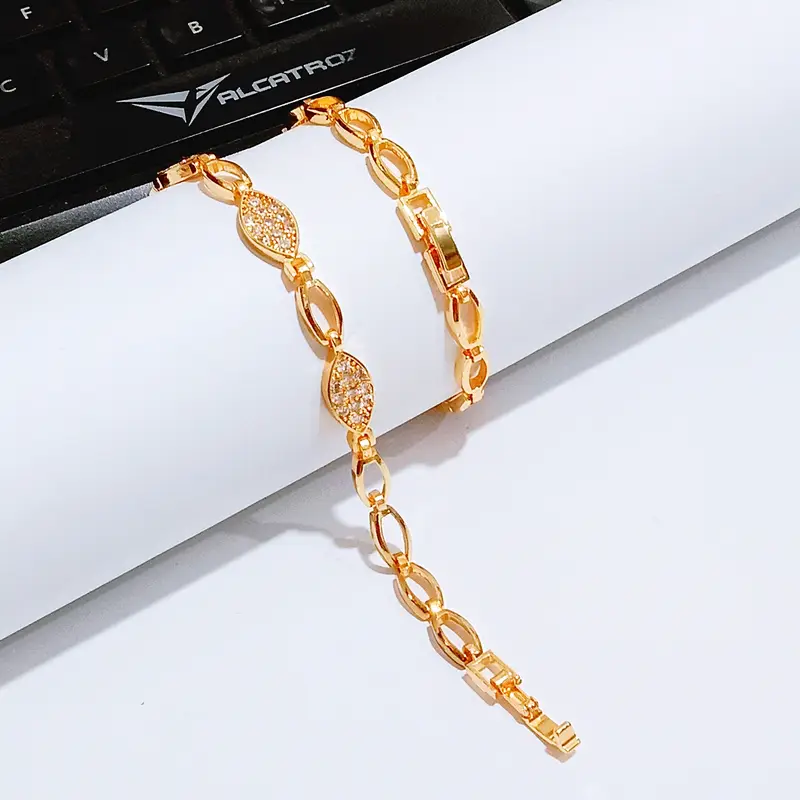 Gelang Tangan Rantai Gold Elegan – Permata Zircon Anti Karat