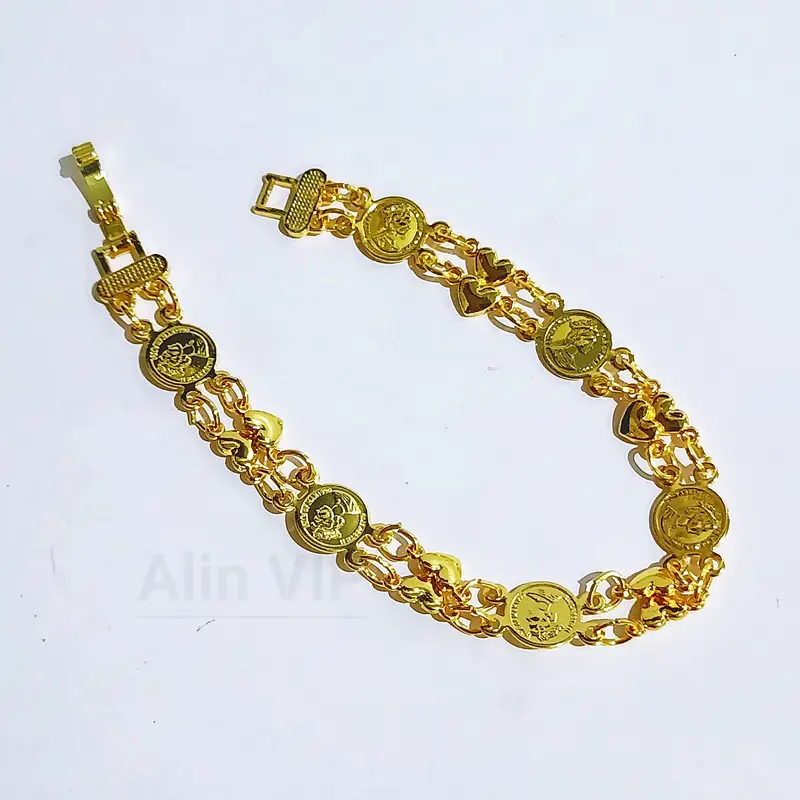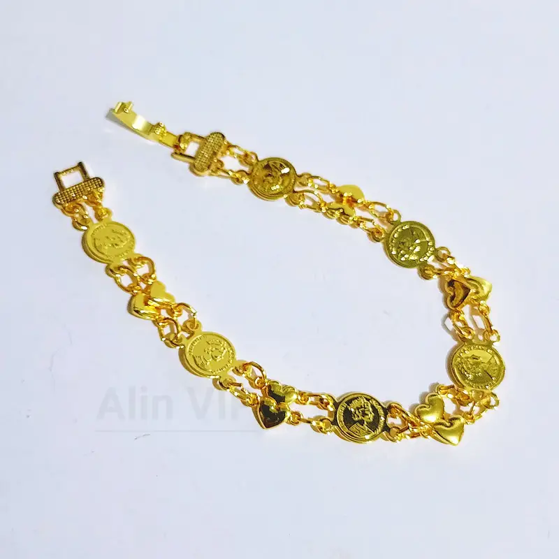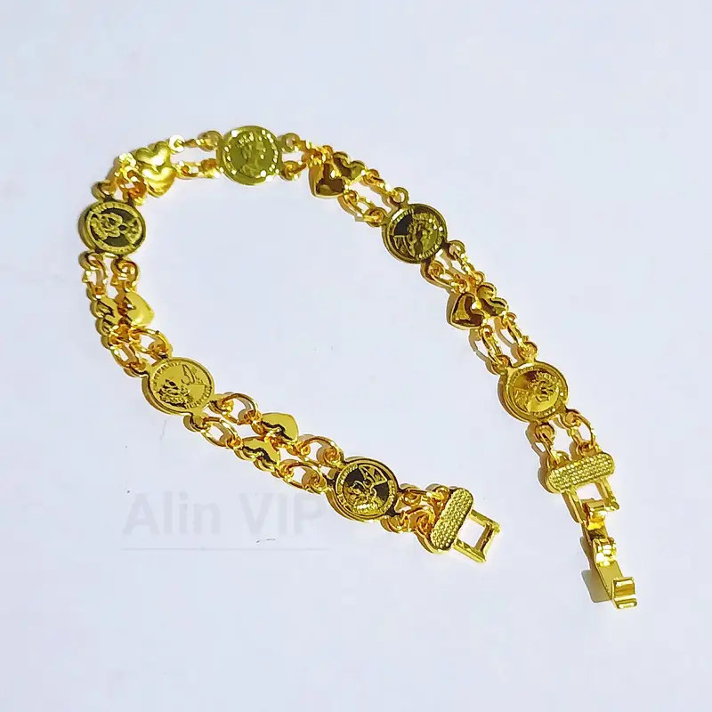 Harga grosir untuk 1 pcs gelang. Panjang 18 cm dengan desain juntai motif love yang romantis. Terbuat dari cooper alloy lapis emas dengan kualitas premium. Material anti karat dan non alergi, aman untuk kulit sensitif.
