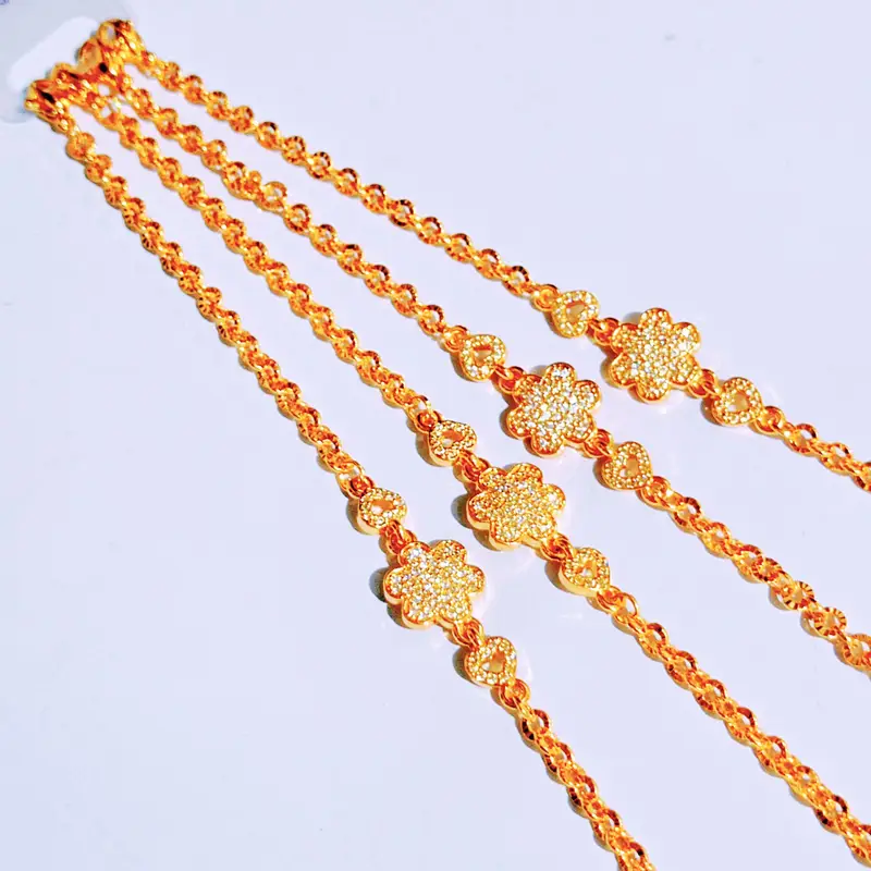 Harga grosir untuk 1 pcs gelang. Panjang 18 cm dengan lebar 7 mm. Gelang rantai plat dengan lapisan emas berkualitas. Terbuat dari cooper alloy lapis emas dengan kualitas premium. Material anti karat dan non alergi, aman untuk kulit sensitif.