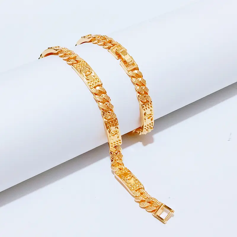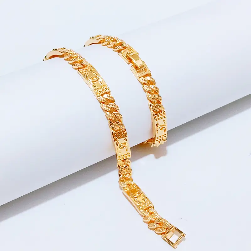 Gelang Tangan Rantai Plat Gold – Gelang Tangan Kasual Anti Karat