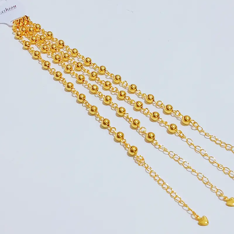 Harga grosir untuk 1 pcs gelang. Panjang 18 cm dengan desain simpel yang elegan. Gelang rantai gold dengan lapisan emas berkualitas, cocok untuk pemakaian sehari-hari. Terbuat dari cooper alloy lapis emas dengan material anti karat dan non alergi, aman untuk kulit sensitif.