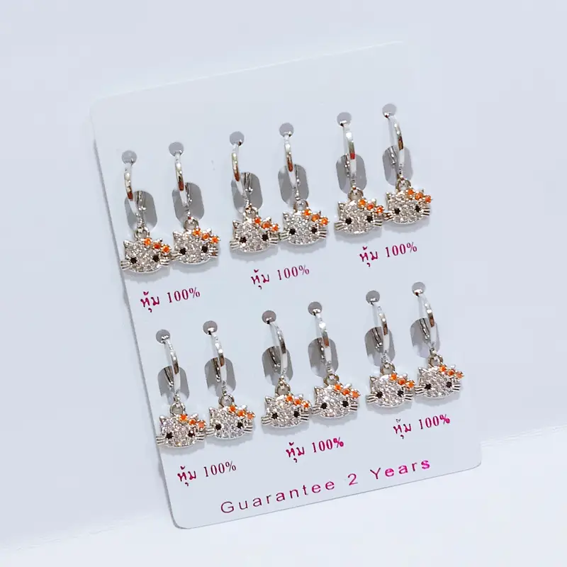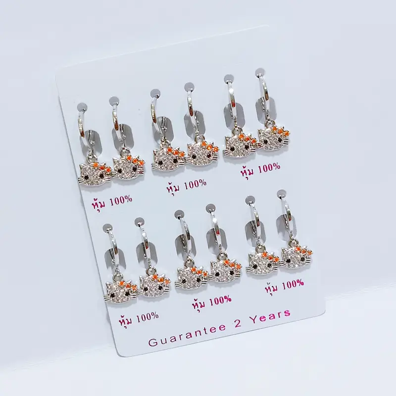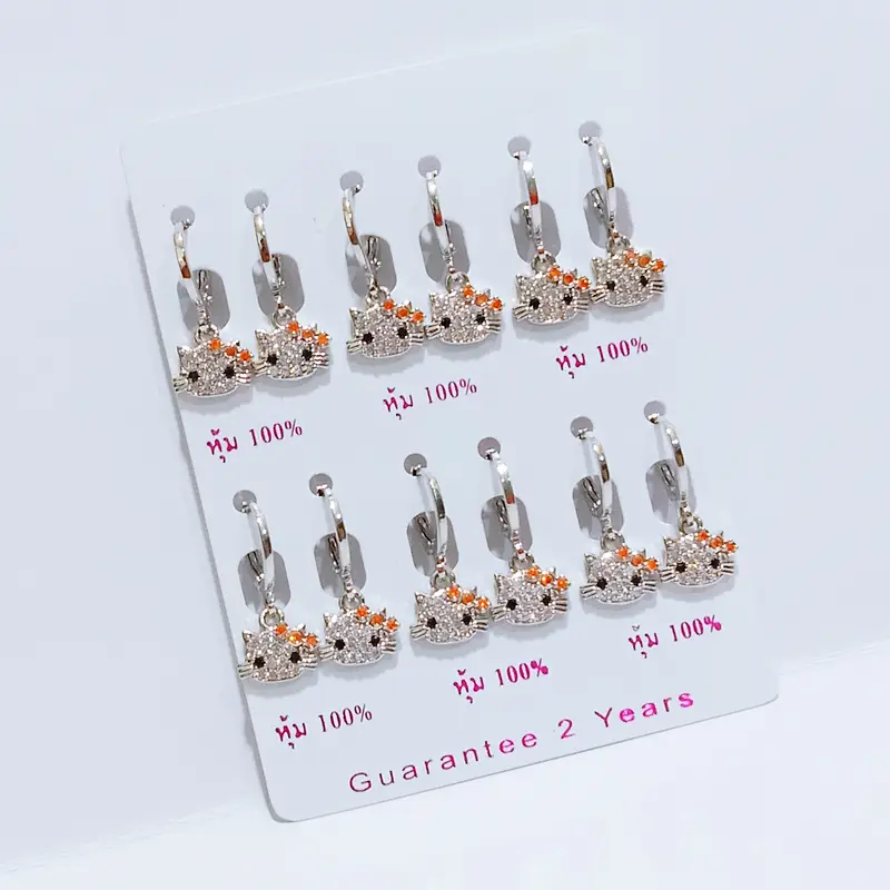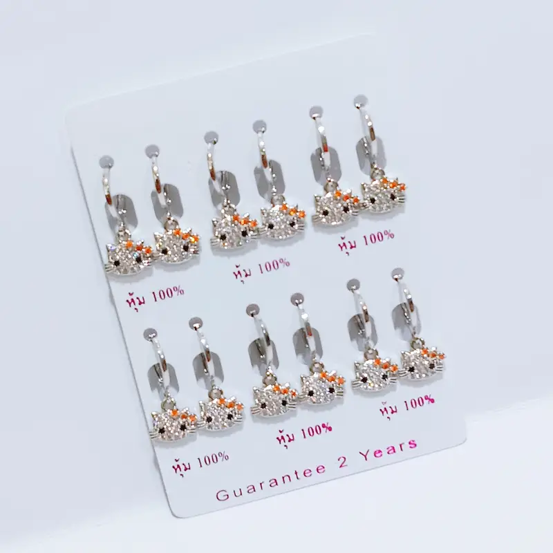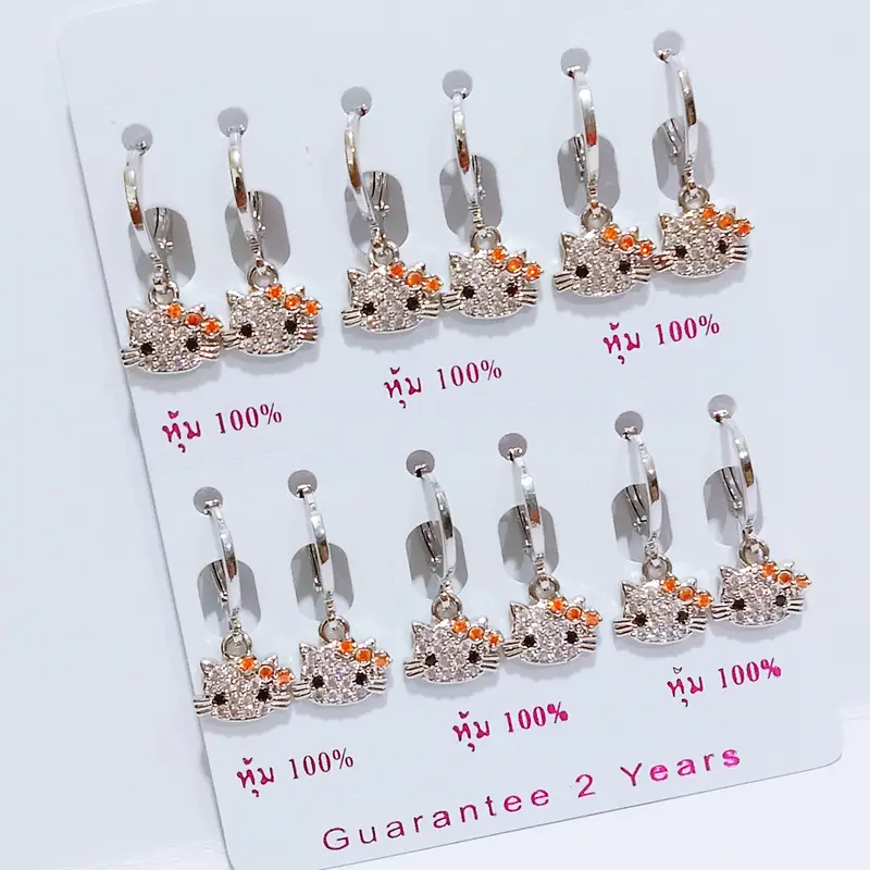 Harga grosir untuk 1 pasang anting dengan ukuran all size anak hingga remaja. Terbuat dari tembaga lapis perak dengan permata kristal zirconia. Material anti karat dan non alergi, tidak menimbulkan iritasi pada kulit si kecil. Desain juntai motif cat dengan sentuhan silver modern yang elegan.