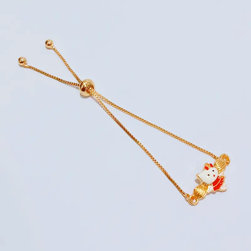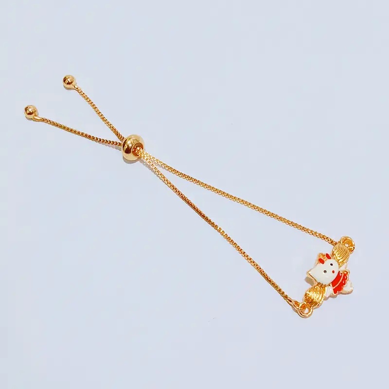 Harga grosir untuk 1 pcs gelang dengan desain kasual yang bisa disesuaikan dengan pergelangan tangan si kecil. Ukuran fleksibel dengan material cooper alloy lapis emas. Anti karat, non alergi, tidak menimbulkan iritasi pada kulit. Cocok untuk si kecil yang aktif dan stylish.