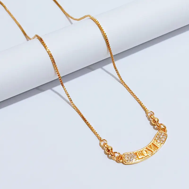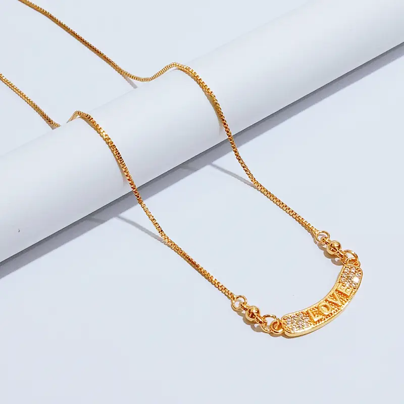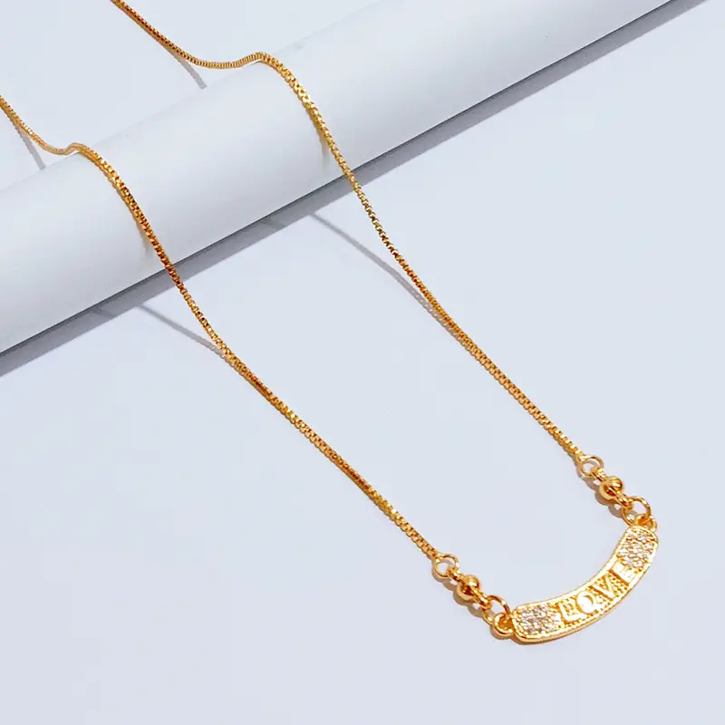 Kalung Koye Dewasa Gold Permata Motif Plat Ukir Love Anti Karat